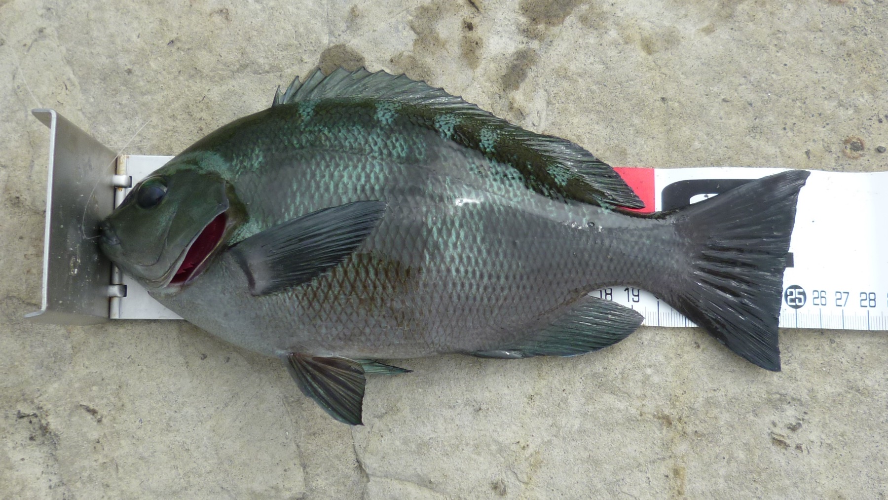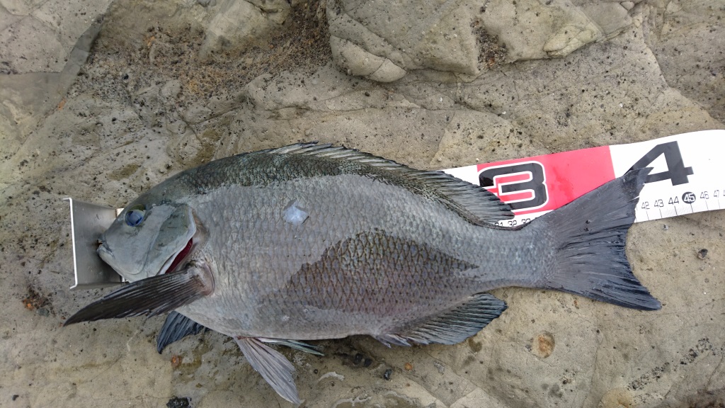 8/11(三浦・高磯)-超久々 25cm- 釣り 2016年08月12日 いろいろと野暮用に追われ、なかなか出撃できなかったんですけど、超久々に行ってきました。いやーアイゴとかもっと釣れるかと思ったんですけどね、結局これ一枚だけでした。でも一日曇りで、比較的涼しかったんで助かりましたわ。