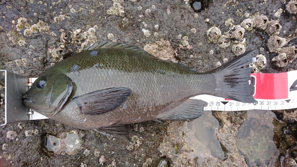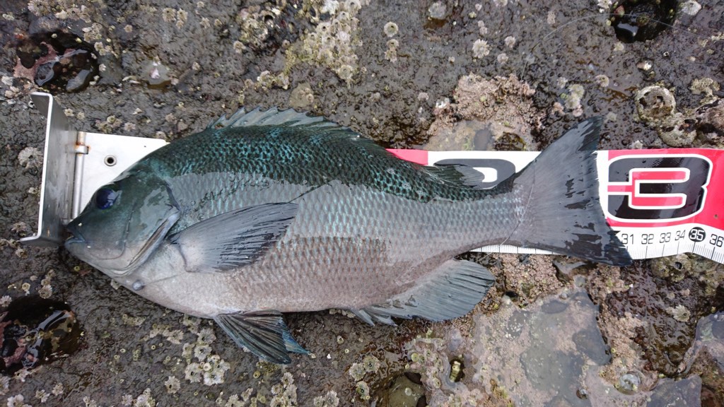 しばらくした12時過ぎ頃、まず31cmがヒット。その直ぐ後アイゴ、ちょっとして35cmと3連発。この展開は超久々ですわ(^_^;)