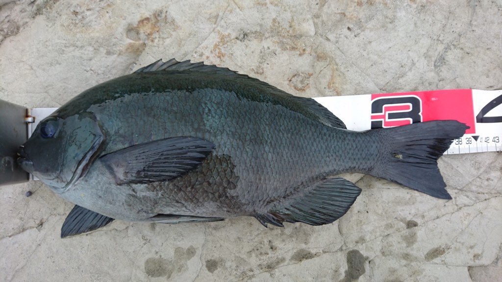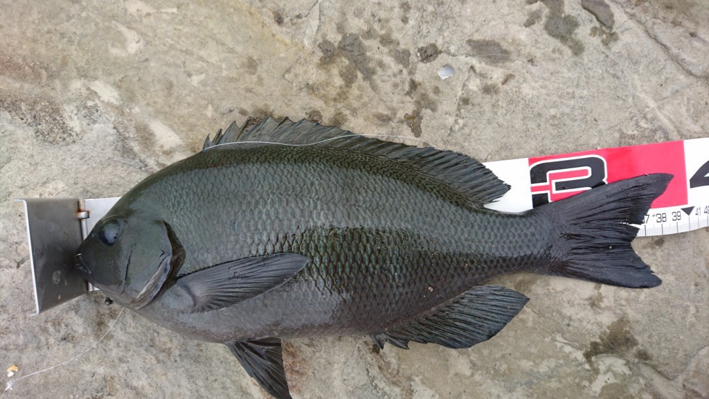 結局私はノーヒットで終わったんですが、同行のかっぱさんは良型メジナと良型クロダイ、さらにルアーでヒラスズキまで上げてました。この人はすごい(@_@)