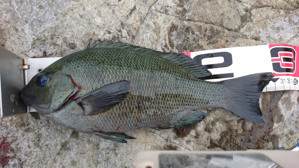 しばらくした12時過ぎ頃、まず31cmがヒット。その直ぐ後アイゴ、ちょっとして35cmと3連発。この展開は超久々ですわ(^_^;)