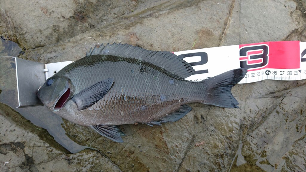 開始早々のヒットで今日はバホバホかなとか思ったんですが、結局本命はこの一枚だけ、あとはアイゴが釣れただけで終了でした。おまけに一発大波でタモと餌箱流されて痛い出費ですわ(T_T)