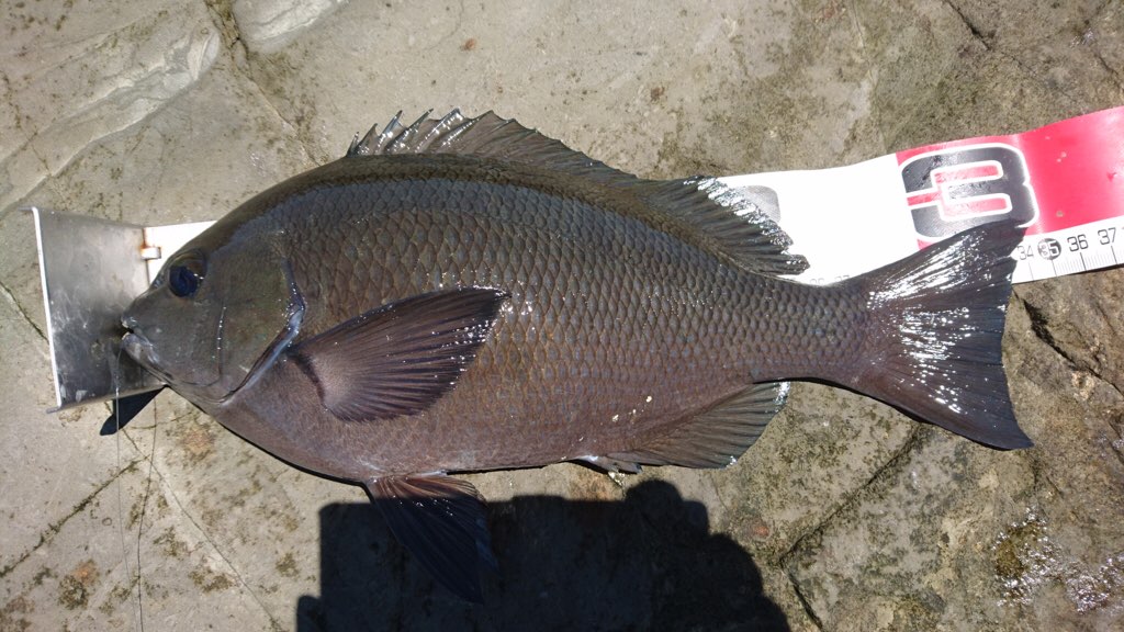しばらくした12時過ぎ頃、まず31cmがヒット。その直ぐ後アイゴ、ちょっとして35cmと3連発。この展開は超久々ですわ(^_^;)
