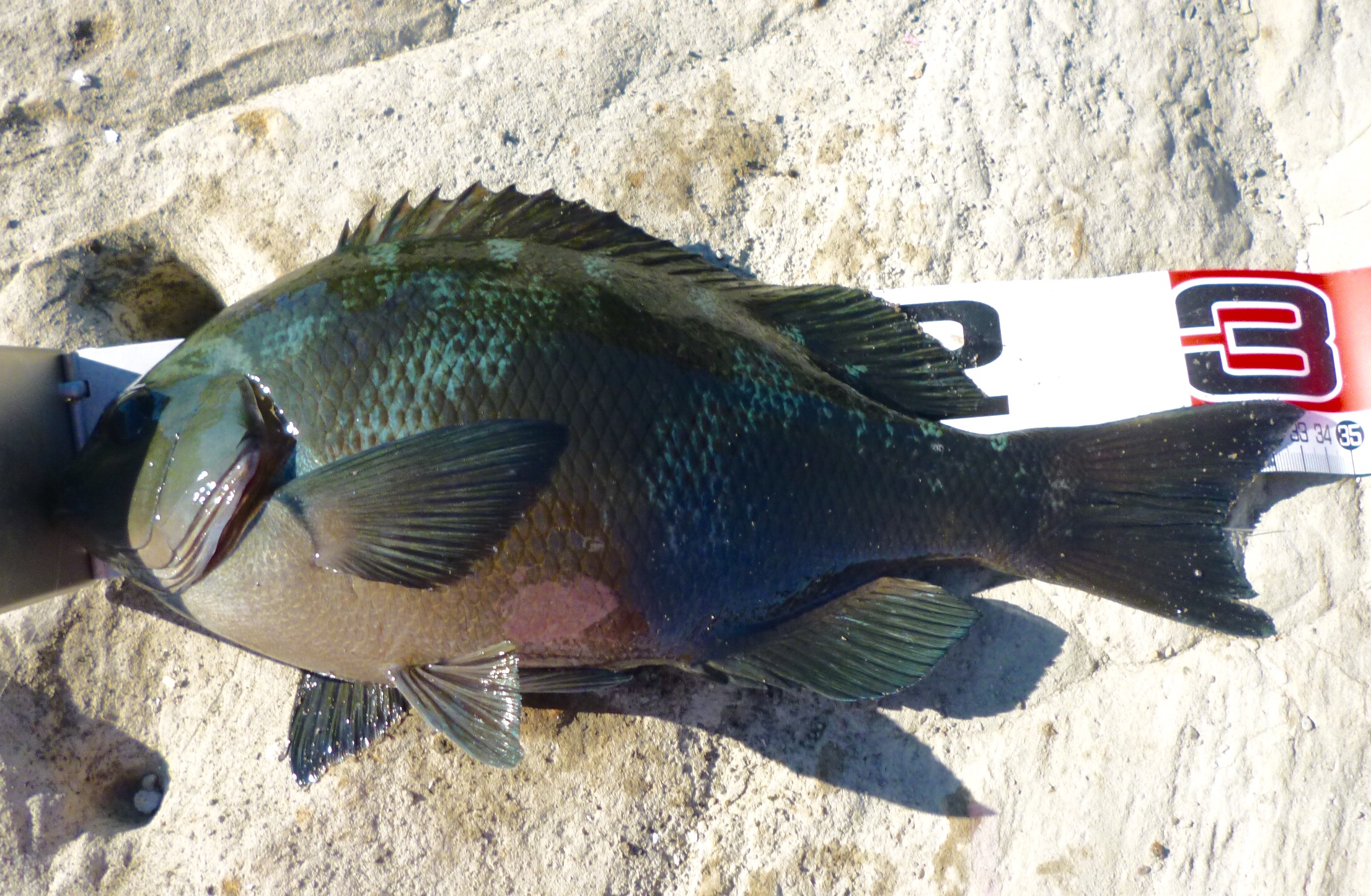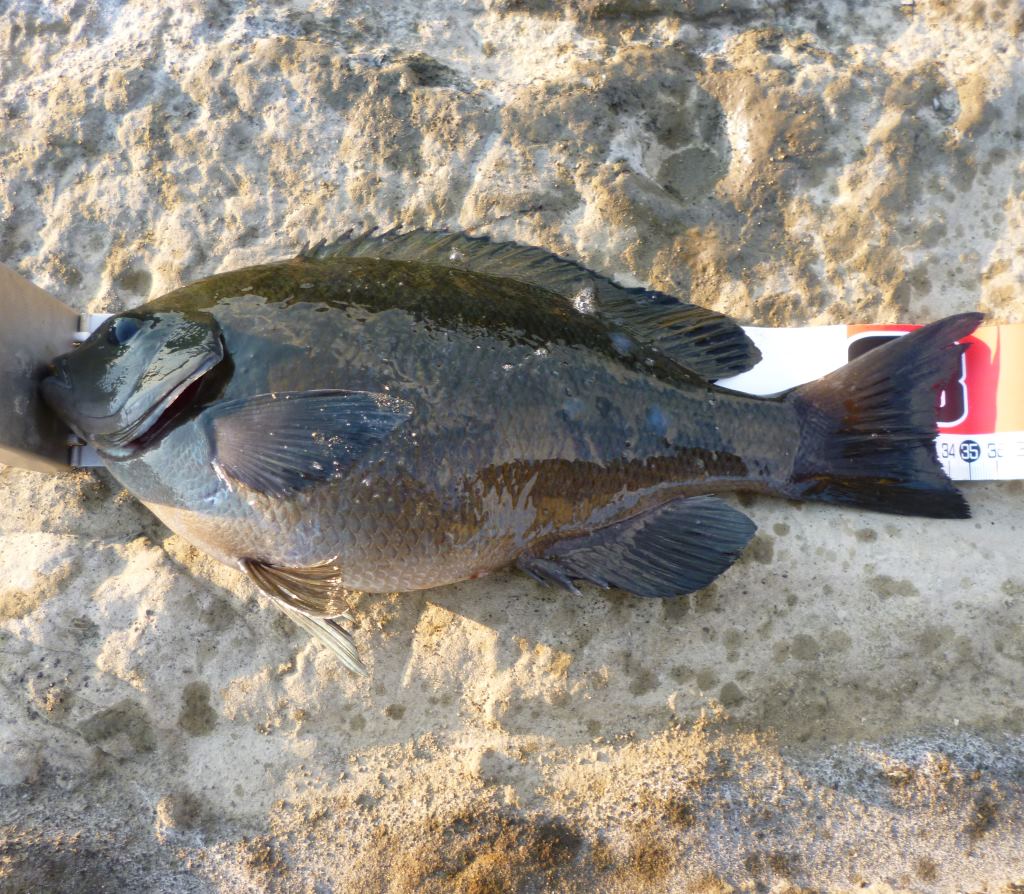 3/10(三浦・毘沙門)- 2017年初物 ちょっと小さいけど(^。^; ー 釣り 2017年03月10日 いやーやっと今年の初物が出ました。35cmと少し小さいけど、久々の型物でホッとしました。今日は波が酷くて、どこへ行ってもサラシで真っ白の洗濯機状態。午前中に同行のかっぱさんが45cmを上げて、今日は好調かなと思ったんですけど、波が酷すぎてなかなか後か続きません。夕方になってやっと私に35cmが来ましたけど、それで終了。もう少し釣れるかとも思ったんですけどね、なかなかそうは行きませんわ(^_^;)